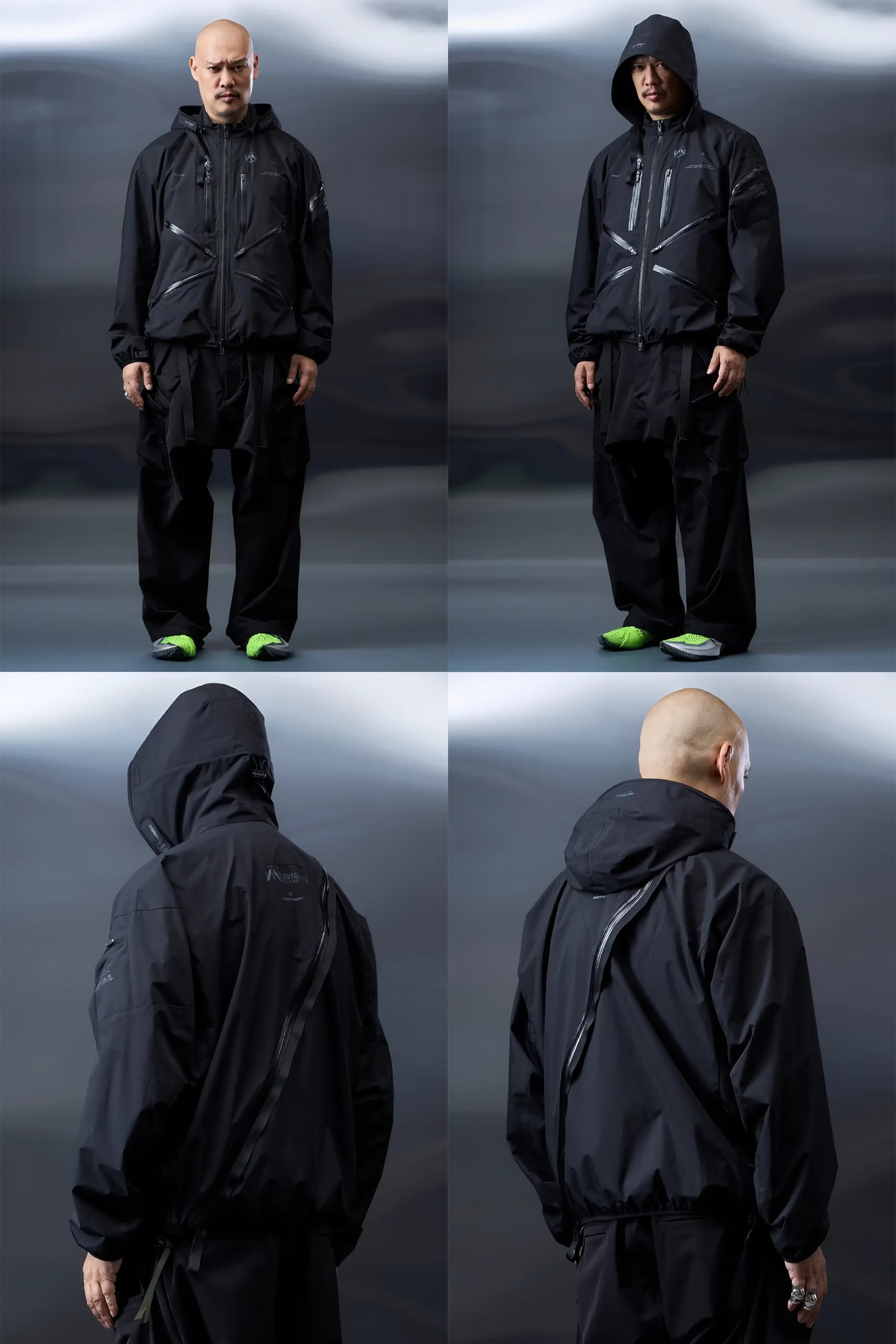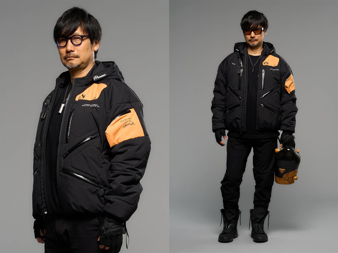 小岛秀夫 Kojima Productions 还携手 ACRONYM 打造了以「死亡搁浅 2」为主题的联名系列,Errolson Hugh 和小岛秀夫都亲自上身演示了系列服饰的穿搭效果。