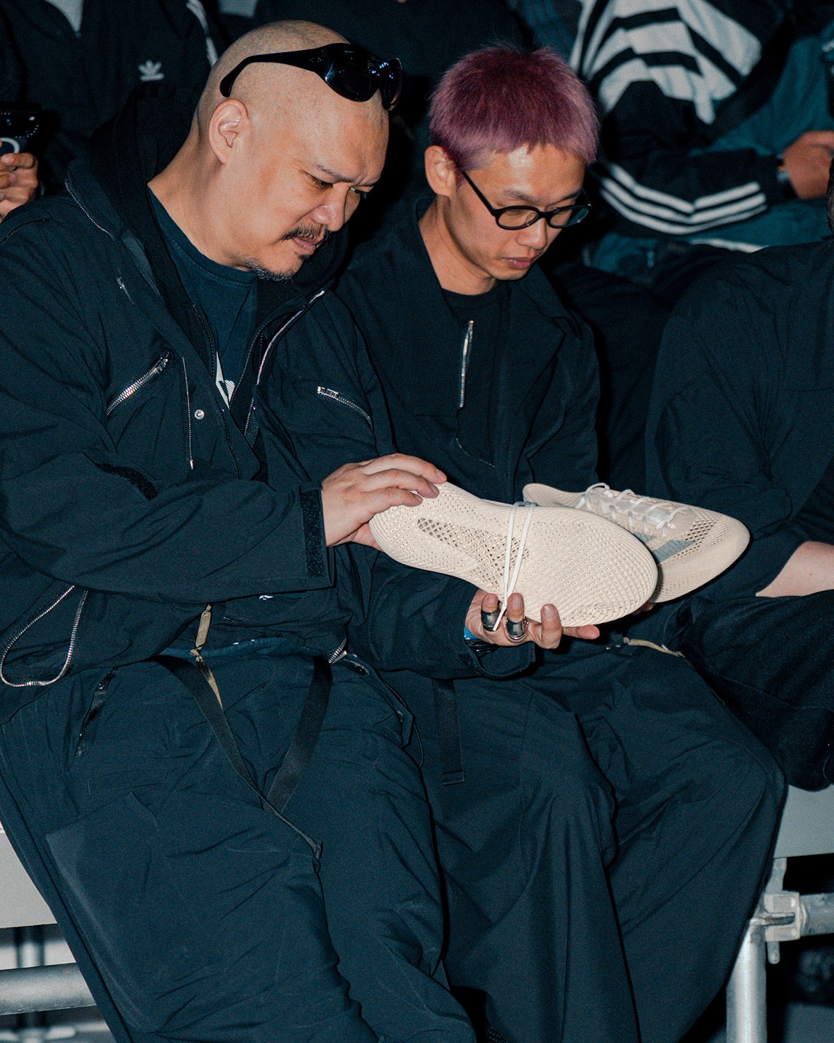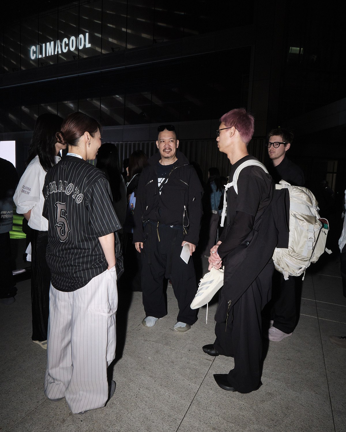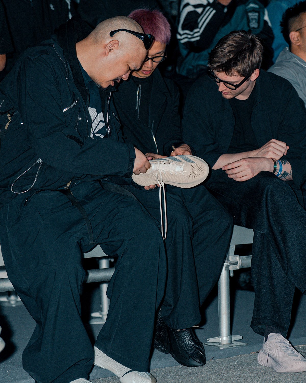 知名机能服饰品牌 ACRONYM 主理人 Errolson Hugh 也出现在了现场,他的光头造型在人群中格外显眼。
