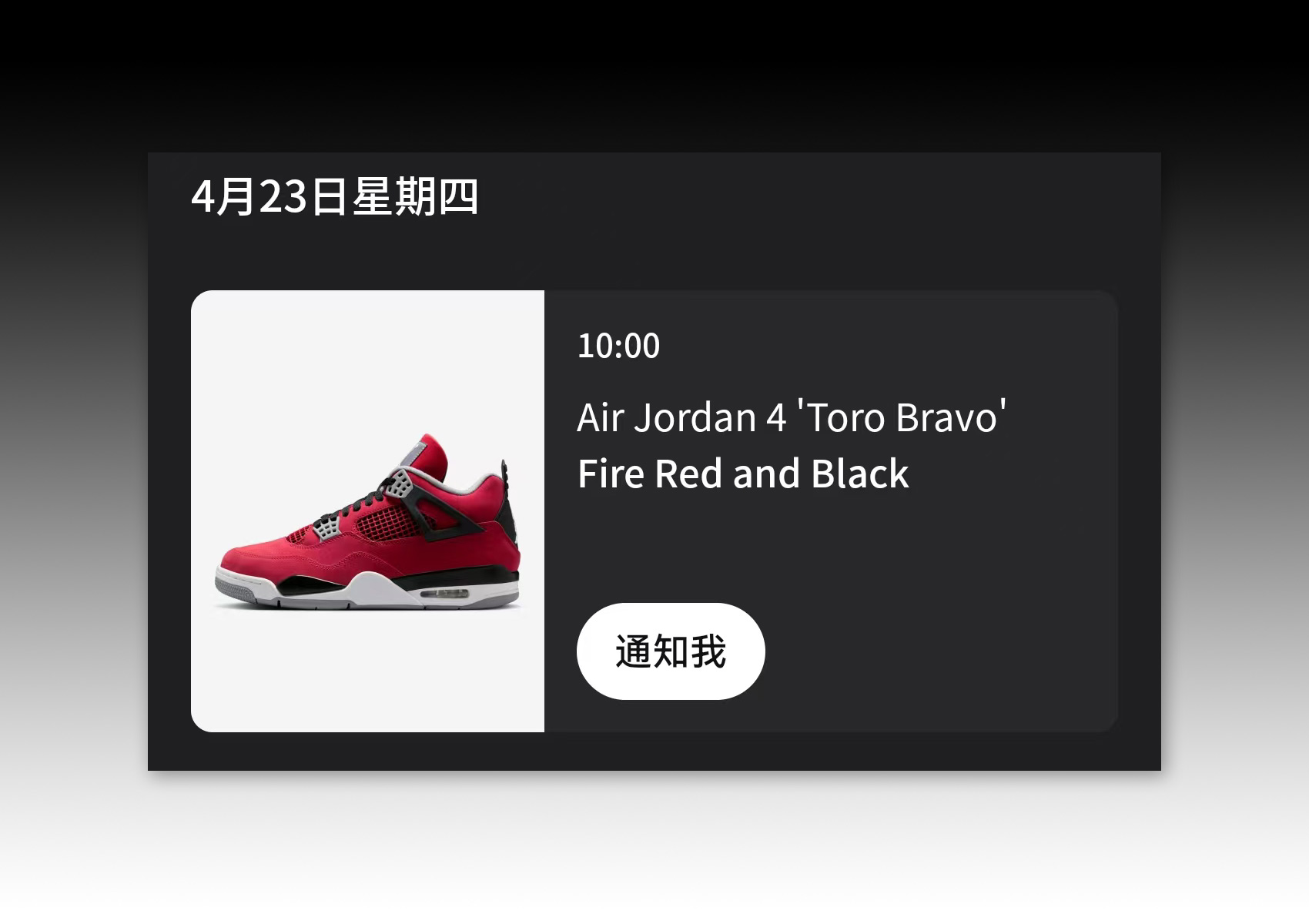 诞生于 2013 年的经典配色 Air Jordan 4 “Toro Bravo” 已经登陆国区 SNKRS 发布了发售预告,将在下周正式登场。