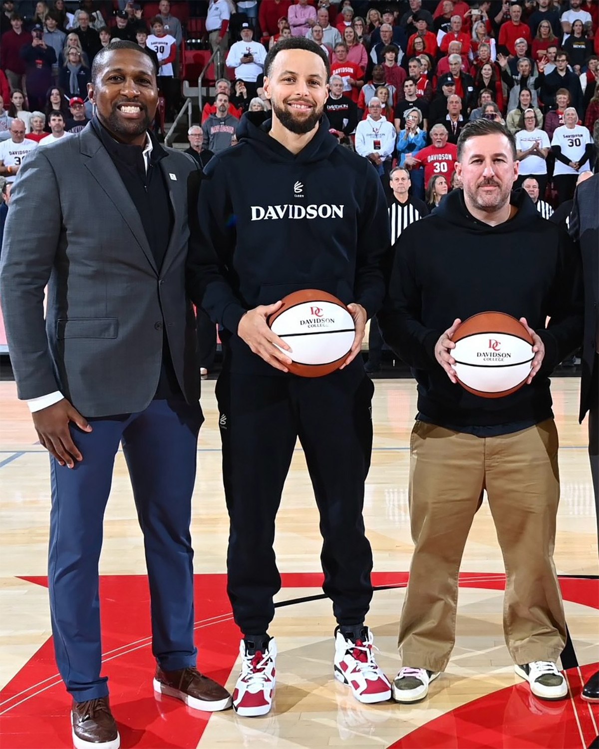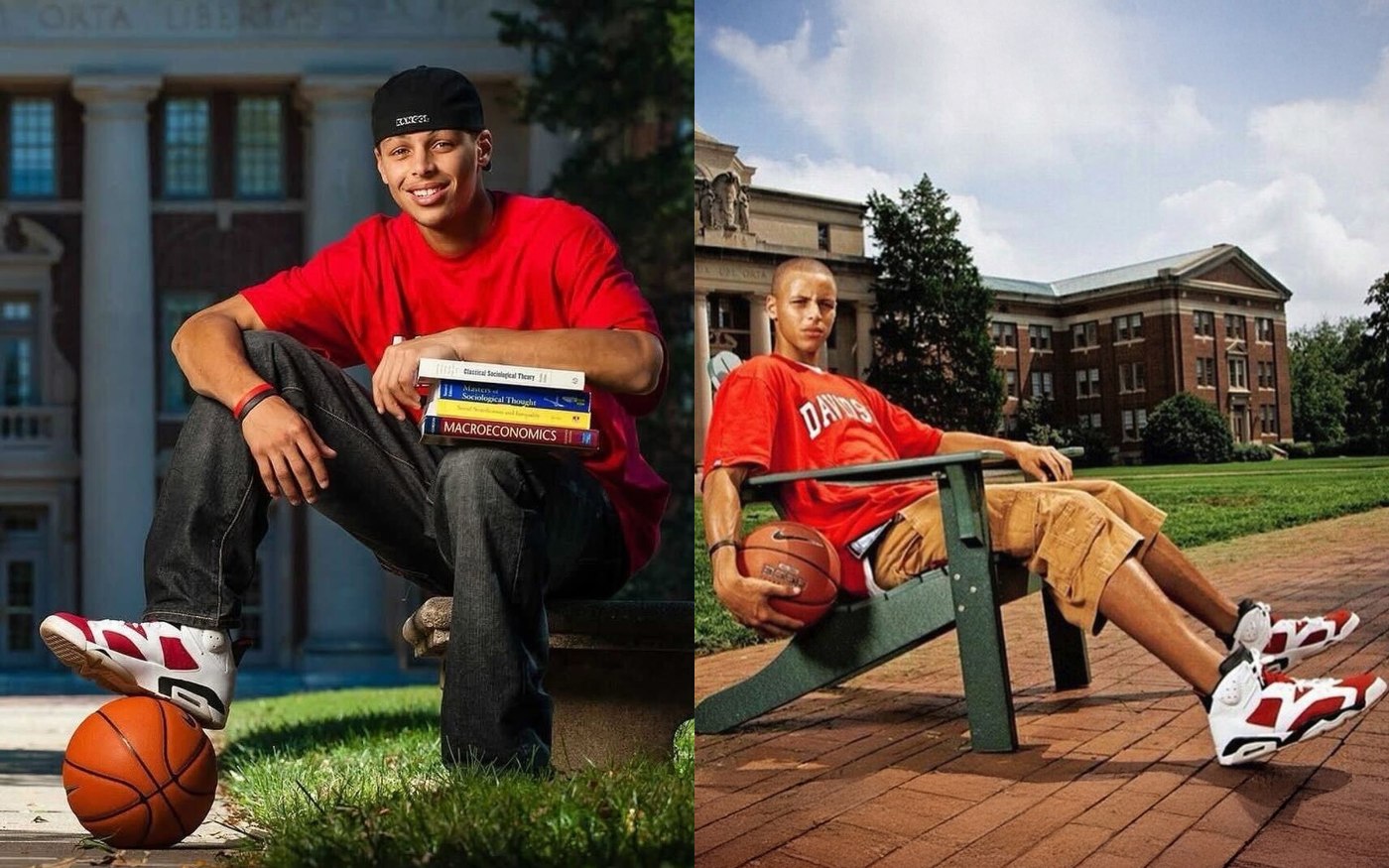 2008 年的库里就格外中意这款配色,曾在自己的母校拍下了这张上脚照。