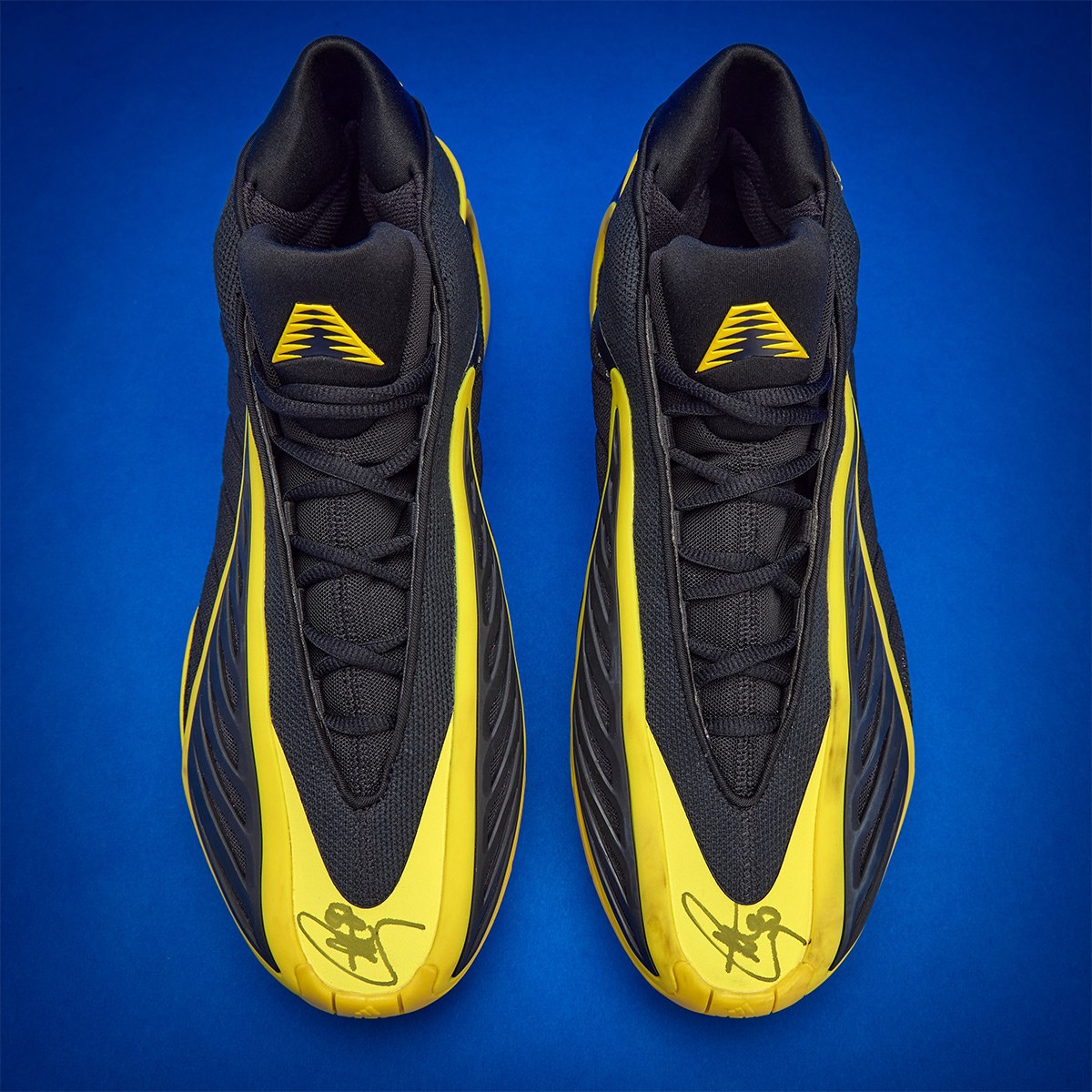 苏富比拍卖网站显示,这双鞋是一个「双签」版本,左右鞋款的鞋头都带有库里的亲笔签名。