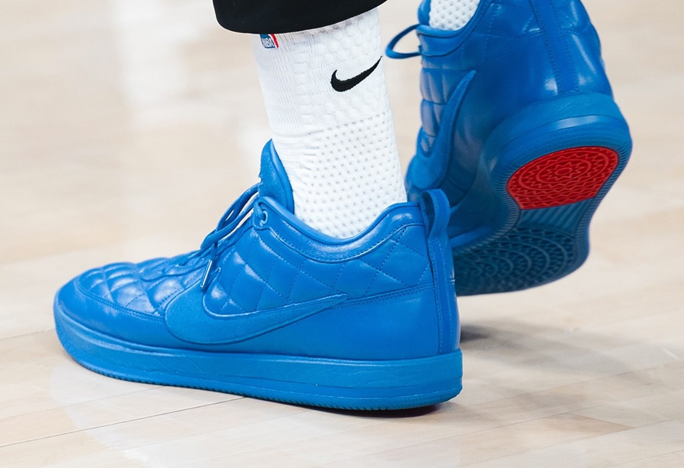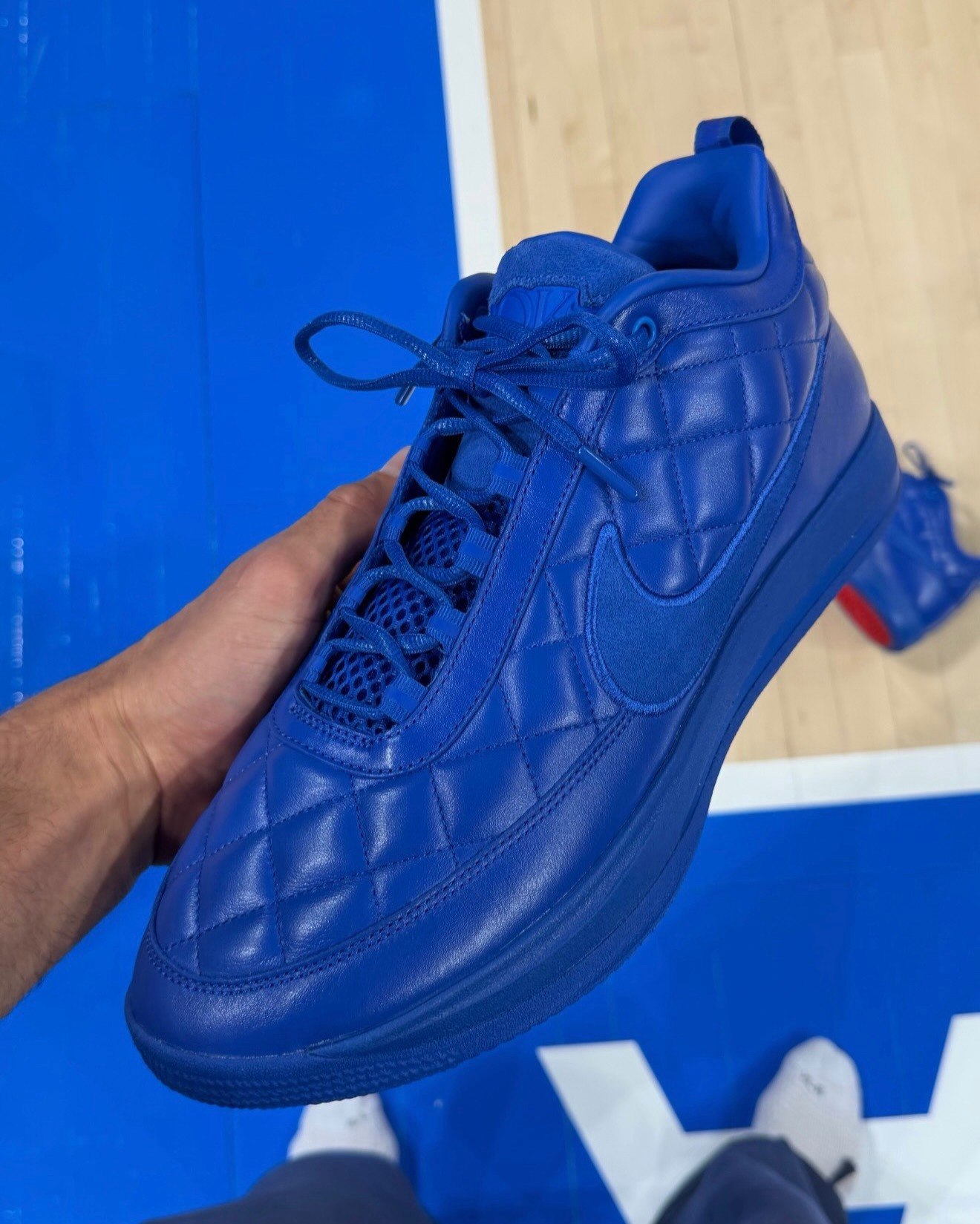 这双 Nike Book 2 PE “Just Don” 同样采用了蓝色色调贯穿,以菱形格纹和优质皮革,渲染出类似奢侈品手袋的质感。