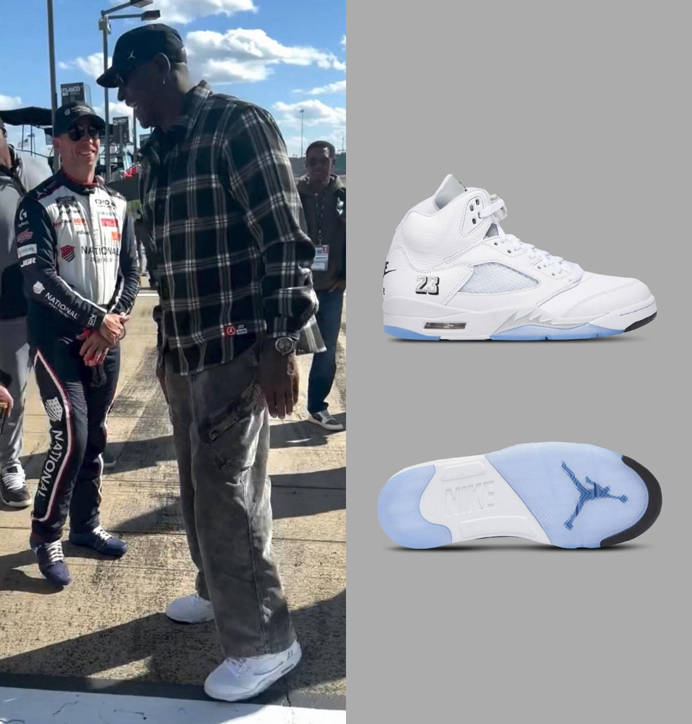 此前我们报道了他在 NASCAR 赛车场上脚了即将发售的大红 Air Jordan 4 "Toro Bravo",而今天他又换了一双鞋。