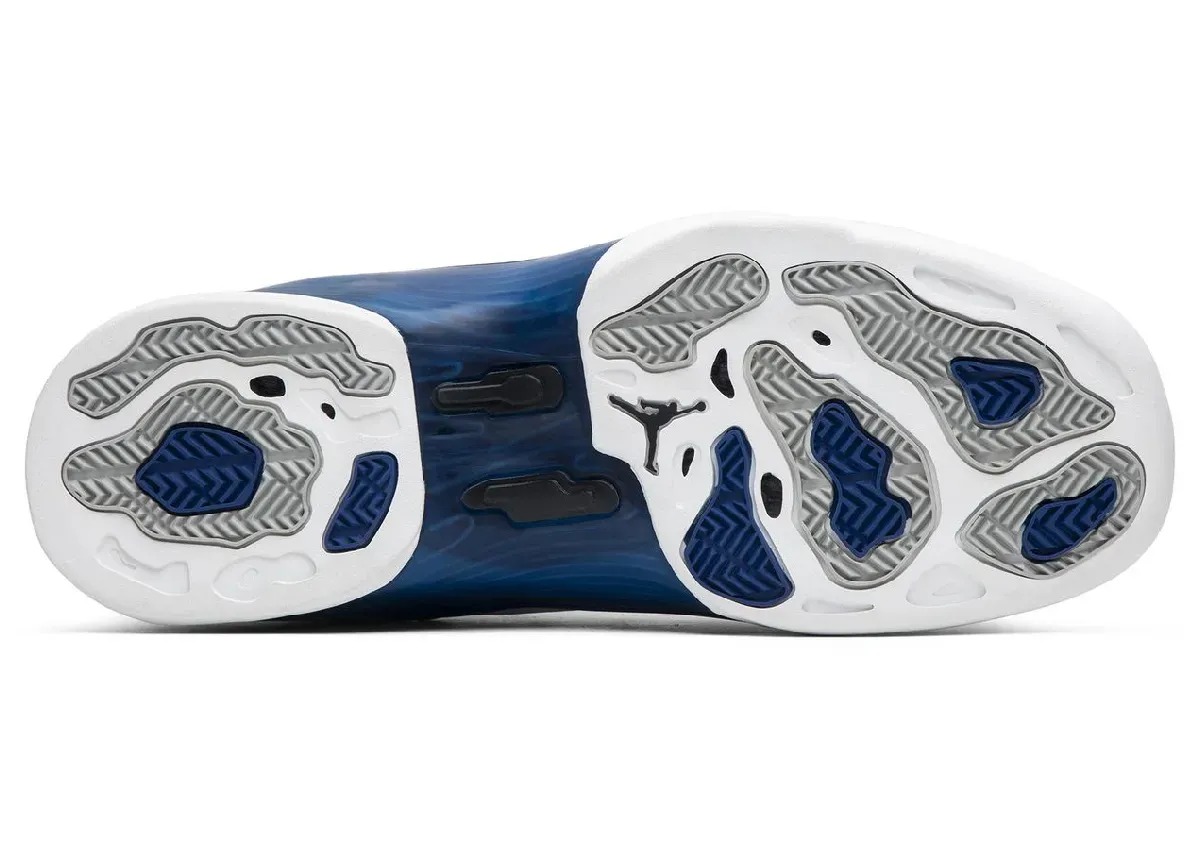 中底、鞋带扣和外底部分点缀大学蓝,后跟的镀铬材质也是这双鞋的一大特点。
