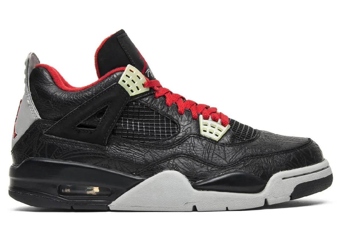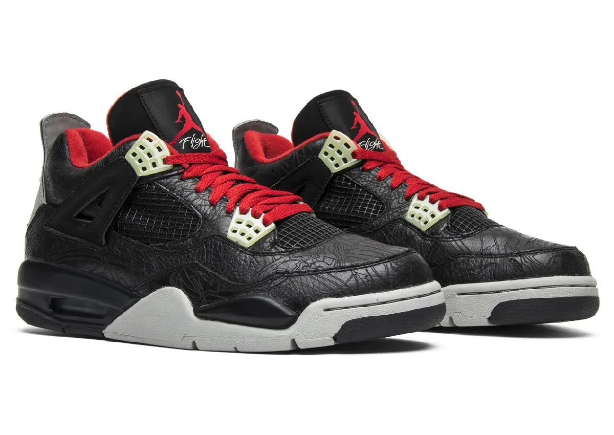 在二十多年前的 2005 年,Jordan Brand 为了庆祝 Air Jordan 系列 20 周年,特别打造了这两款采用镭射皮革工艺的 Air Jordan 4 “Laser”。