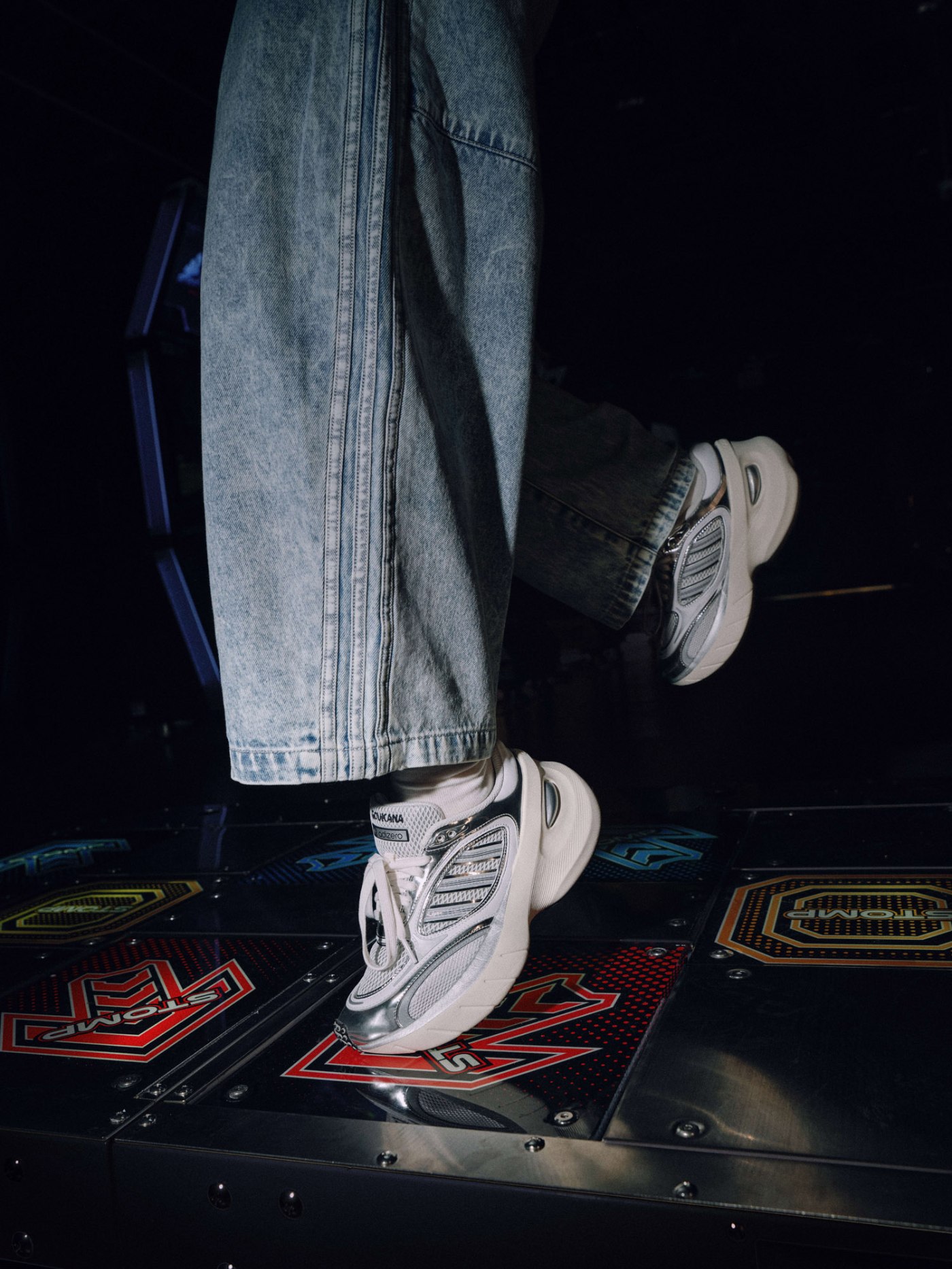 Megaride F50 延续了这种大底设计,并且在鞋面部分融合了足球鞋的轮廓,视觉效果既复古又前卫。