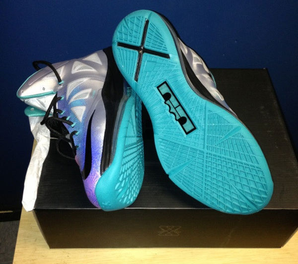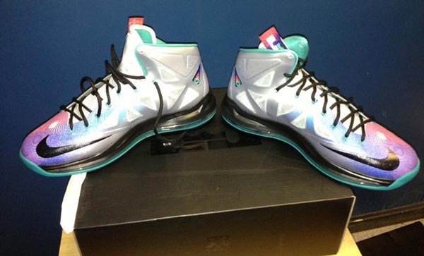 此次给大家带来最新配色的Nike LeBron 10 ,此鞋款鞋面以铂金色打造,被光照射后呈现彩虹色纹理,鞋身 Nike 的LOGO是以橙色边框勾勒,搭配黑色的鞋带以及中底点缀,加上绿松石的大底。这会不会是詹姆斯的季后赛鞋款呢?大家期待么?
