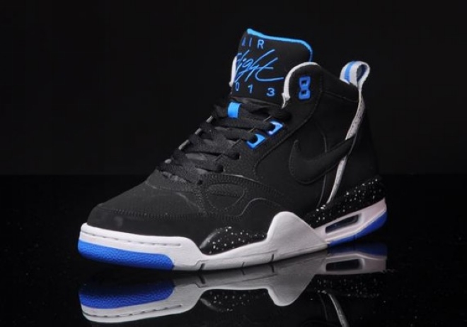 近日这双黑\相片蓝配色的Nike Flight ’13 Mid在网络上曝光了实物图片,并同时曝光了它的货号信息,喜欢的朋友可以关注一下。 Nike Flight ’13 Mid 货号:579961-001