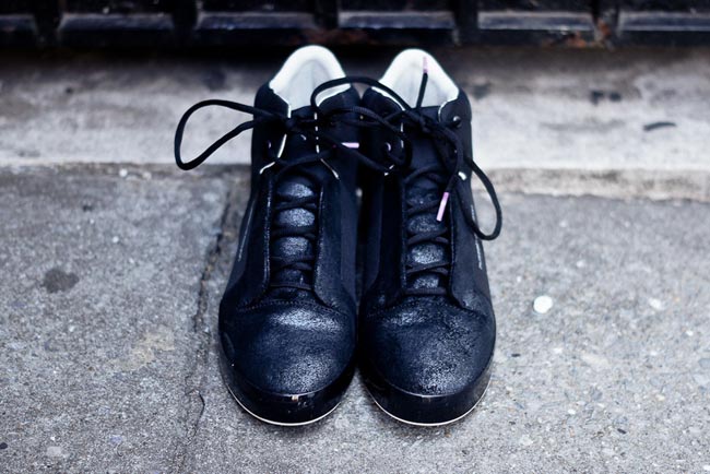 PUMA 与英国时装设计师 Hussein Chalayan 的合作系列近日新作频发,刚刚为大家带来了一双以雀鸟图案打造的鞋款,现在继续为各位带来这位设计师的新作。这双 Glide 2 Mid 鞋款采用暗黑风格打造,以皮革以及富有光泽质感的麂皮材质混合打造鞋身,质感出众。这款鞋售价 210 美金,有兴趣的朋友可以登陆 KithNYC 查看购买详情。