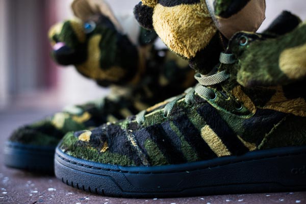 adidas Originals 与鬼才设计师 Jeremy Scott 的合作还在继续,虽然外界对于这一系列已经出现了类似“江郎才尽”的说法,但是小编还是对此次发布的三款新品感觉不错。这一系列包含了早些时候为大家介绍过的“迷彩熊”以及“黑翅膀”,还有一双配色极具少女情怀的 Penny Loafer SLM。特别是这款迷彩熊,在迷彩当道的 2013 年,这款鞋能否成为一匹黑马呢?
