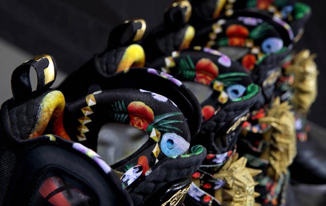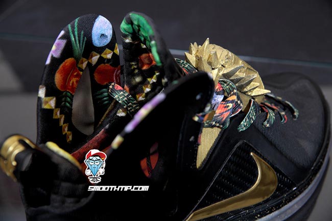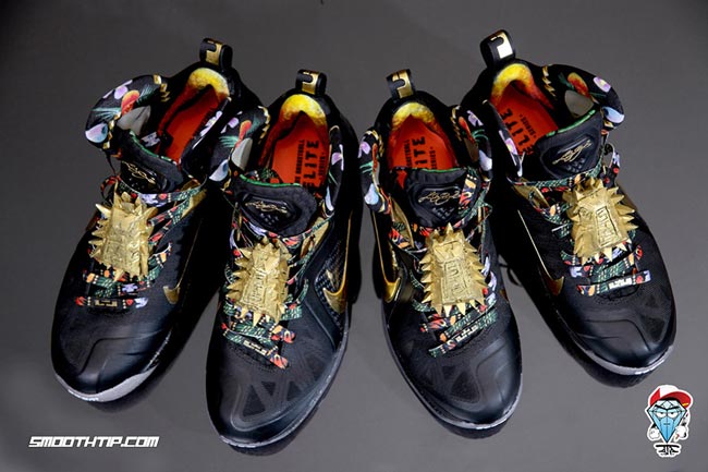 似乎球鞋定制爱好者对于 Lebron 系列的鞋款都有着相当高的热情,近日定制大牌 SmoothTip 又以 Nike LeBron 9 Elite 为蓝本,打造了一双名为 “Watch The Throne” 的个人定制版本。“Watch The Throne” 原本是为 Kanye West X Jay-Z 的巡回演唱会打造。鞋款的内衬上运用了诸多 Givenchy 的设计元素,并加载了一个极为夸张的金色装饰物,尽显浮夸。