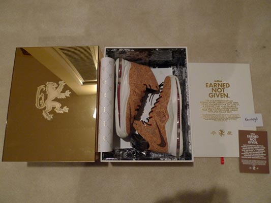 上周末,万众瞩目的 Nike LeBron 10 “Cork” 终于正式发售,全世界的鞋迷都为之疯狂了一把。当这两天众多鞋迷朋友还在想方设法得到它的时候,今天,eBay 上又曝光了一款限量版本的 “Earned Not Given” 黄金套装。奢华的包装使得这款原本就贵气十足的王者之靴更添帝王之气。