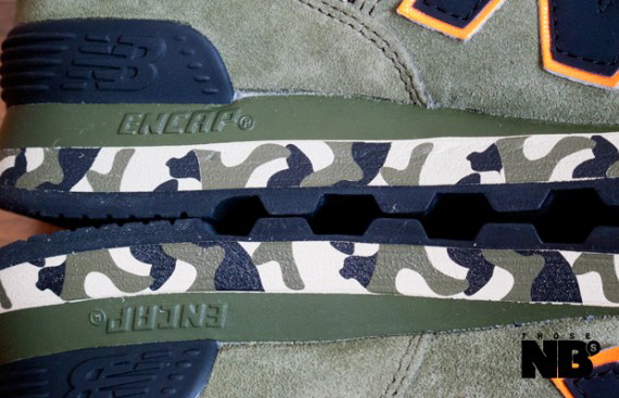 迷彩元素已经持续火爆了很长一段时间了,运动品牌 New Balance 也曾在之前推出过迷彩版本的 New Balance 574,此番,又一款全新版本的 574 曝光于网络。此次的全新版本采用了军绿色的鞋身为主体,而迷彩图案则被加载到了中底以及鞋帮位置,而鞋带以及 Logo 则采用了橙色勾勒。目前还没有这款 574 的确切发售信息,我们也会持续关注,敬请期待吧。