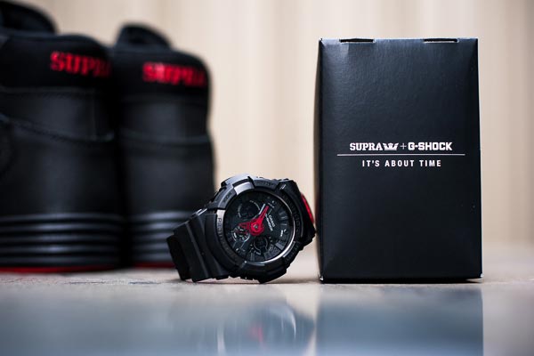 之前为大家报道过,美国滑板品牌 Supra 此次联手日本电子厂商 Casio ,推出了一款合作版本的 Supra Vaider Lite,并名为为 "Its All About Time",以此庆祝 G-SHOCK 30周年。今天小编为大家带来这款跨界之作的全新图赏,鞋舌上特殊的指针图案极为惹眼,20:13 也象征着2013年。
