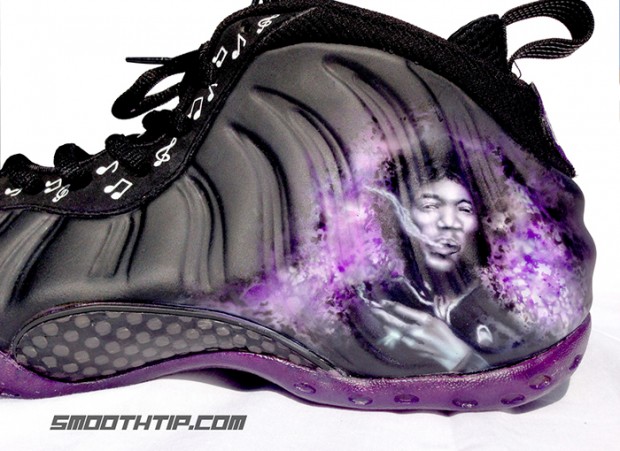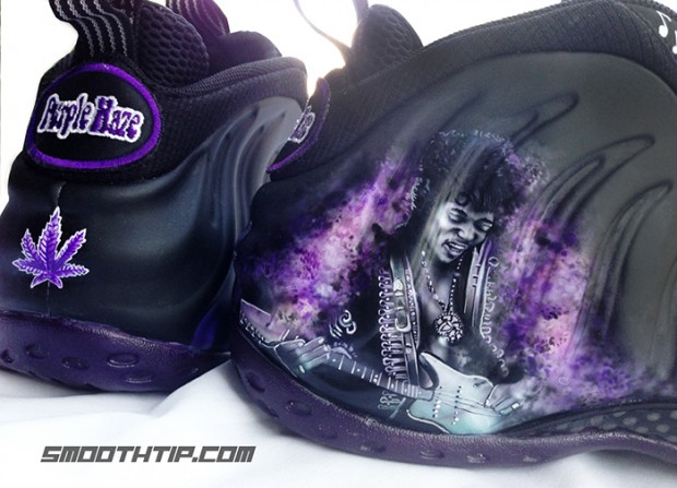 随着定制的流行,越来越多的人都紧跟着定制的步伐,此次将给大家带来一款特殊的定制鞋款 Nike Air Foamposite one "Puerple Haze" 。此鞋款以即将发售的“Stealth” 配色作为蓝本打造,鞋身加入了紫色烟雾元素,还加入了流行音乐史上最伟大的吉他演奏者 吉米·亨德里克斯 头像作为点缀,那接下来,大家就一起跟着我们的图片去欣赏一下这款定制吧。