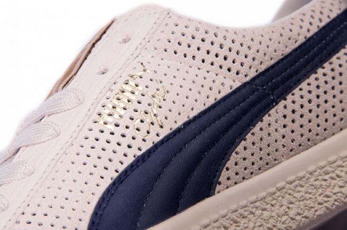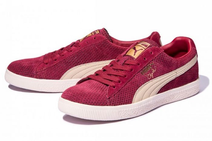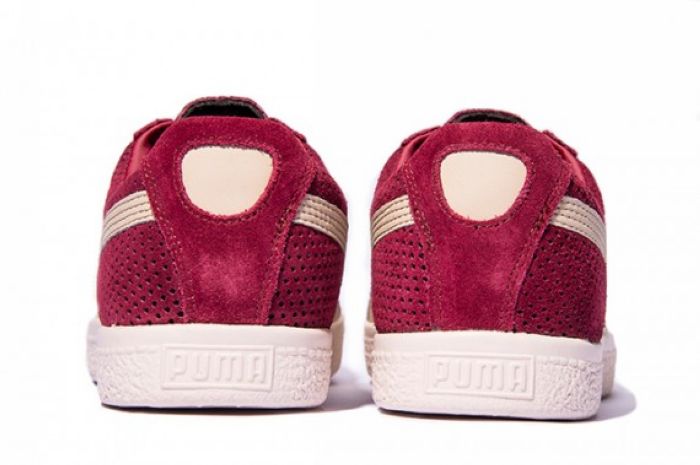 全新的Puma Clyde“Urb Pack”在网络上曝光了实物图片,Puma Clyde“Urb Pack”中包括两款不同配色产品,分别是以酒红色为主色和以白色为主色的Puma Clyde,值得一提的是这套装产品的打孔皮革鞋面材质,密布的打孔制造出不同的视觉效果,呈现出不同以往的鞋面质感。