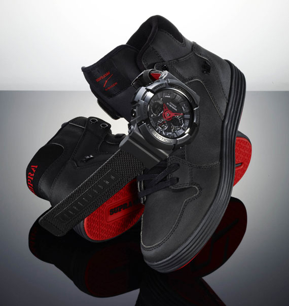 此次为大家带来一双跨界合作鞋款,合作双方来自日本电子厂商 CASIO 以及美国加州滑板品牌 Supra,双方此次为庆祝 G-SHOCK 30周年,共同联手推出了这款 G-SHOCK x Supra Vaider Lite 。鞋款为配合GA-200SPR-1AJR联名腕表的发布,采用了相同配色的组合,配以 Supra 独有的 Supratuf 鞋面技术,质感极为特殊。而鞋舌上则加载了特殊的指针 Logo,并定格在 20:13,象征着2013年。