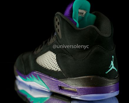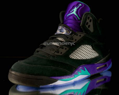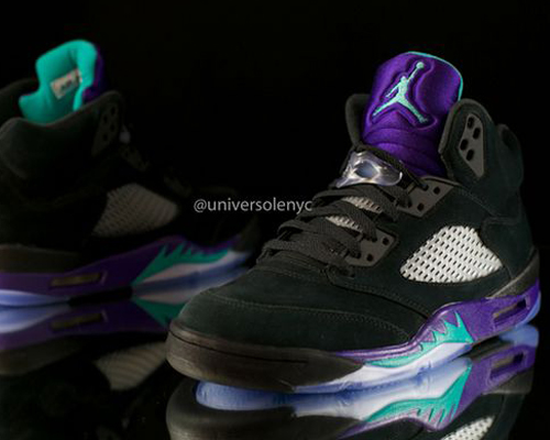 除了即将在5月复刻的“紫葡萄”Air Jordan 5 Retro,在今年稍晚的时候还会有一双“黑葡萄”Air Jordan 5 Retro与我们见面,如今网络上曝光了最新的实物图片和货号信息。中底和鞋舌的紫色让人爱不释手,而鞋面麂皮的运用更是提升了球鞋整体的质感,不过在打理方面会有些困难,让我们先欣赏图片,望“葡”止渴吧!