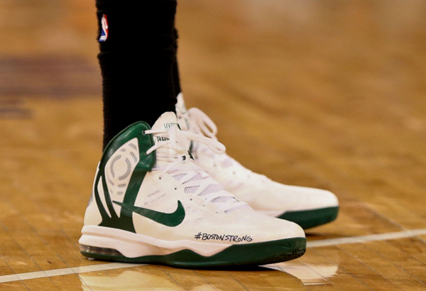 昨天,2012-2013赛季NBA季后赛终于正式打响。所有握有主场优势的球队均成功取得开门红,没有爆出大家所期待的冷门。除了精彩的比赛,季后赛上各位球员脚下的球鞋较之常规赛来说更为精彩,除了 Jordan Brand 为旗下球员准备的季后赛PE鞋款,你还能看到个人定制版本以及各种iD版本,现在就让我们通过图片来回顾下昨天有哪些精彩球鞋吧。
