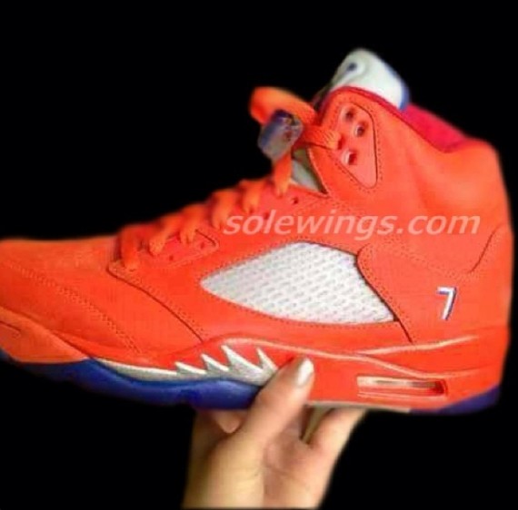 继上次 Air Jordan 5 "Chris Paul" 快船队配色的曝光,此次将给大家带来一款全新的 Air Jordan 5 ,此鞋款命名为 Air Jordan 5 "Melo" ,以安东尼在纽约尼克斯的配色橙色为主色调打造的,鞋身后侧还有安东尼球队的队衣号码 “7” 号,此鞋款会不会市售呢?请大家敬请期待后续报道。
