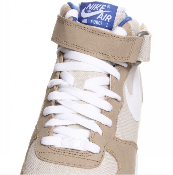 全新配色版本的 Nike Air Force 1 Mid 曝光于网络,运用较为罕见的白桦树色帆布搭配卡其色鞋头,鞋带以及后跟装饰,利用蓝色进行细节点缀。并使用白色鞋带和白色Swoosh整体浅色系的运用倍显干净整洁。目前已经有货号信息曝光,喜欢的朋友可以进一步了解。 Nike Air Force 1 Mid ’07 货号:315123-201