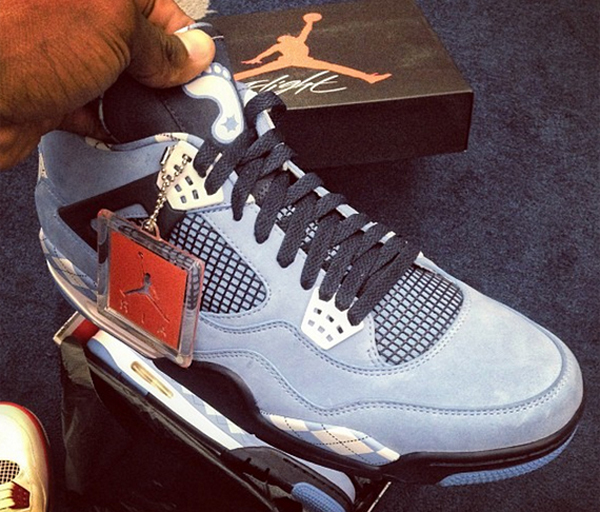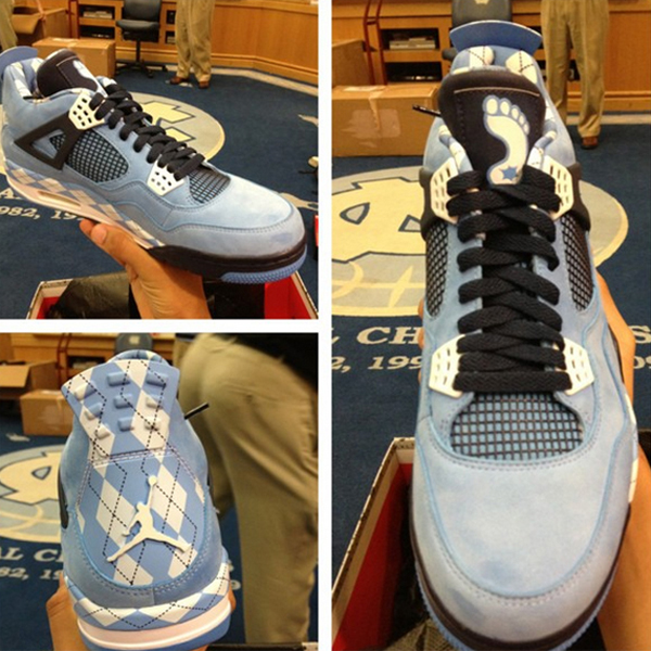 Jordan Brand 旗下所赞助的 NCAA 球队中,最知名的莫过于乔丹的母校北卡罗来纳大学队,经典的北卡色系也是众多 Air Jordan 粉丝心中所追捧的元素。此次,网络上曝光了一款 Air Jordan 4 的 “UNC Tar Heels” PE,从图片中我们可以看出,鞋款的鞋身采用了北卡色覆盖,配以黑色的鞋带以及鞋舌,而最为引人注意的莫过于后跟以及中底处的白蓝色格纹图案,与球队的球衣花纹相匹配,显得尤为特别。