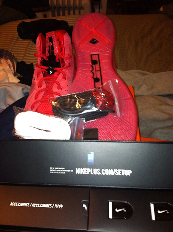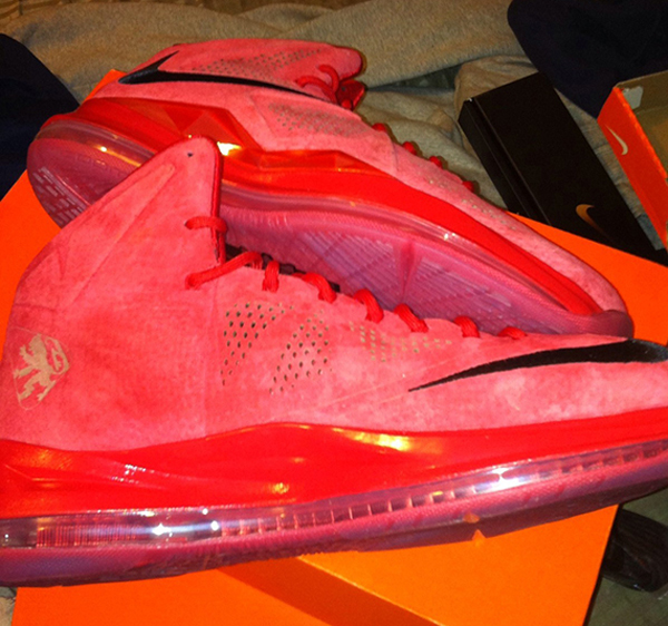 最近的话题都在 Nike LeBron 10 EXT 上,现在我们来看看另一鞋款 Nike LeBron 10 最新的红色麂皮配色,此鞋款采用了全红的翻毛皮材质打造,加上黑色的 Nike LOGO 点缀,让此鞋款更加生动而充满活力。喜欢的朋友可以一起跟着图片来看下哦。