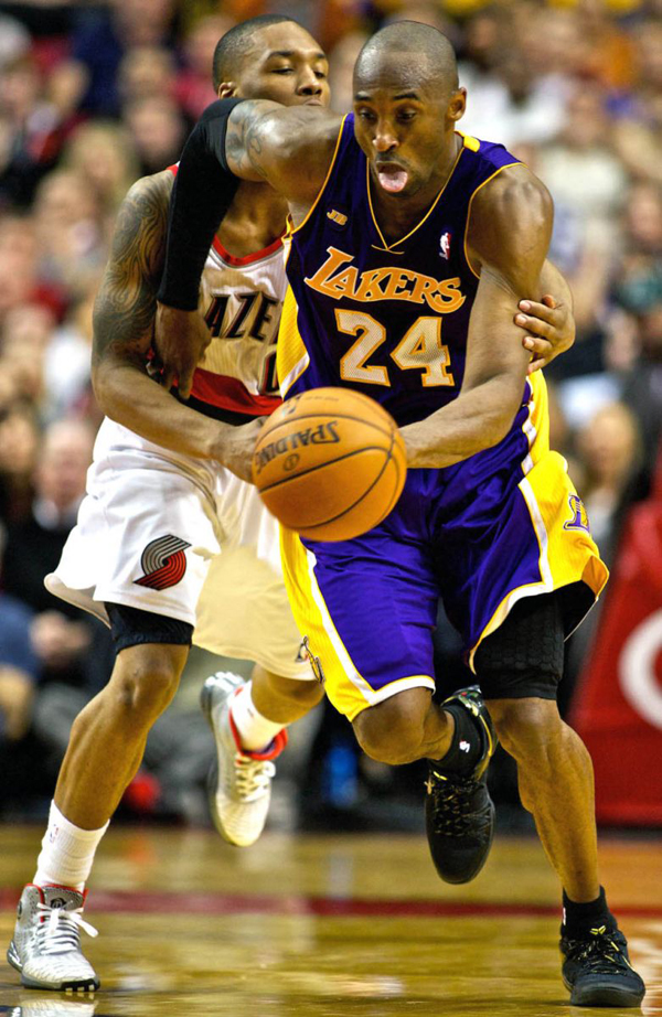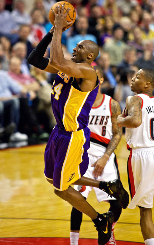 昨天,Nike Basketball 发布了 Elite Series 2.0 金色系列,虽然是专为旗下三大球星的季后赛征程度身打造,但是正在为季后赛席位奋斗的科比却在昨天对对阵开拓者的比赛中提前上脚了其中的 Nike Kobe 8 Elite 黑/金配色。最后,科比拿下47分并且帮助湖人队战胜开拓者,坐稳西部第八的席位。