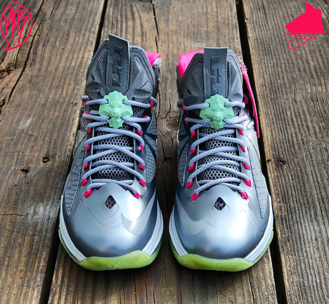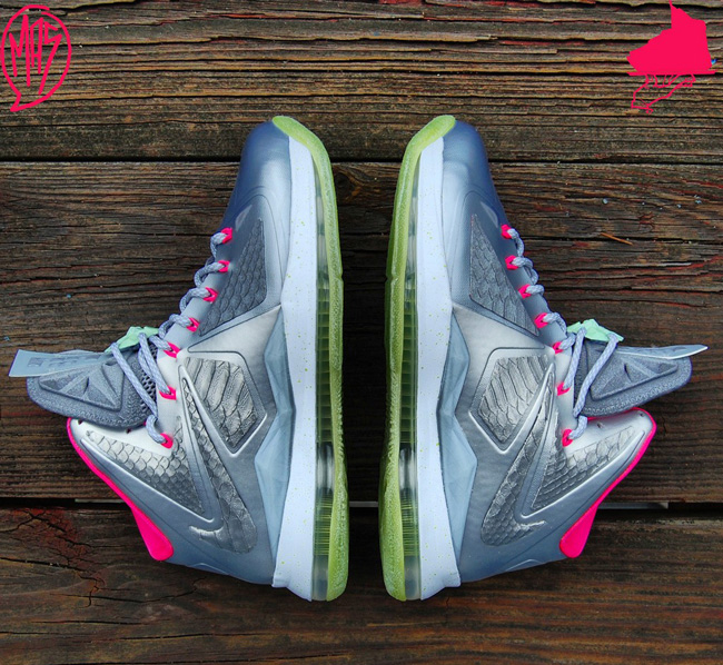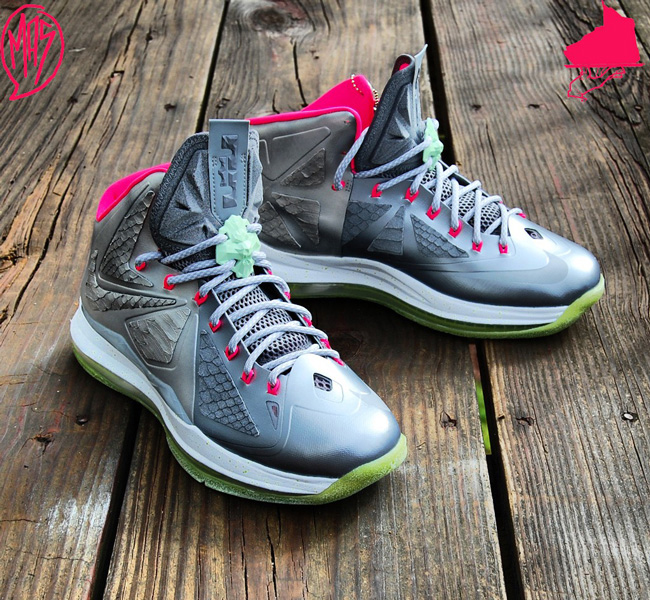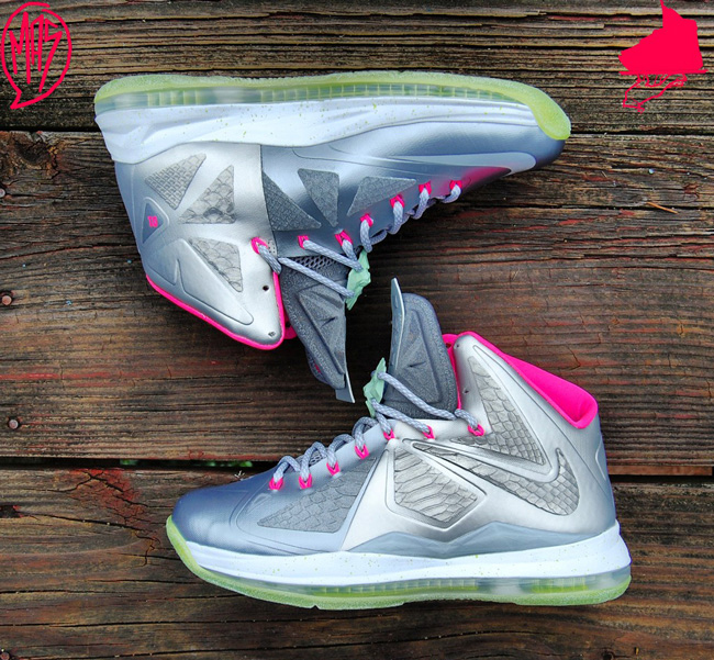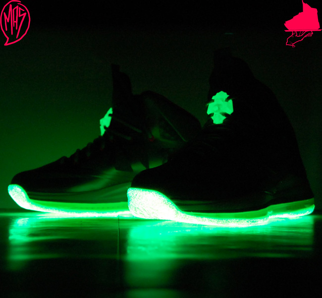 昨天我们为大家带来了一款 Nike LeBron 8 V2 Low “LeBreezy” 个人定制版本,这款 Lebron + Yeezy 元素的个人定制版本得到了很高的反响。今天,另一定制大牌 GourmetKickz 再接再厉,以 Nike LeBron 10 为原型,搭载上 Nike Air Yeezy 2 的 “Platinum” 配色,打造出了这款个人定制版本。从图片中我们可以看出,除了与 Yeezy 极为相似的配色之外,这款个人定制版也搭载了夜光大底,效果极为震撼。