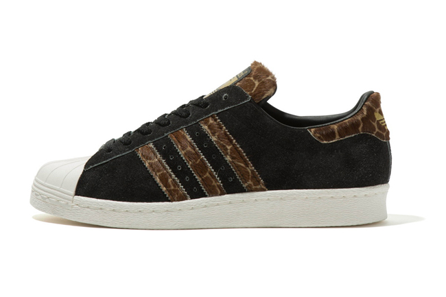 adidas Originals 此次联手美国街头潮流品牌 XLarge,双方携手打造了这款 XLarge x adidas Originals Superstar 80S “长颈鹿”配色。鞋款采用了黑色麂皮制成鞋身,配以白色的贝壳头以及大底,亮点在于采用了长颈鹿纹路的图案,加载到了鞋身上的三杠标志、鞋舌以及后跟位置,潮流味道尽显。据悉鞋款将在4月27日发售,有兴趣的朋友可以关注之后的更多发售信息。