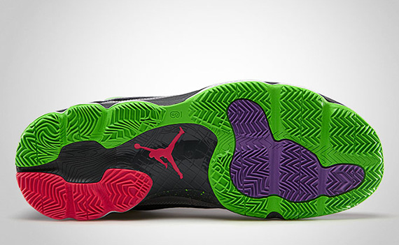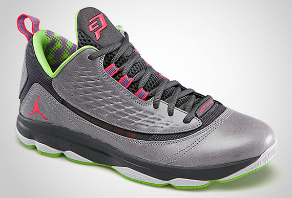 Jordan Brand 为旗下当家代言人克里斯 保罗准备的季后赛战靴 Jordan CP3.6 AE 近日接连曝光了多款全新配色,今天,又一款全新配色曝光于网络。这款配色以金属灰色的鞋面为基础,配以绿、紫、红三色的细节点缀,整款鞋漫画味道浓重。据悉这款鞋将在 5月11起在北美各大店铺上架,售价为125美元。