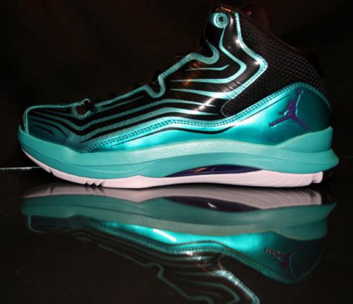 在外形上Jordan Aero Mania与之前的Jordan Aero Flight有着一定的相似度,此次曝光的是这双Jordan Aero Mania的Sample图片,运用黑色大底,搭配水绿色鞋面和紫色细节点缀,喜欢的朋友可以关注一下。