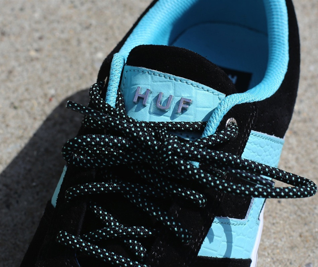 滑板品牌 HUF 近两年迅速在滑板界以及潮流圈蹿红,此次 HUF 邀请到洛杉矶的潮流单位 Diamond Supply Co. ,联手推出了这一 2013 年的合作系列。其中包括了这双 Diamond Supply Co. x HUF Choice 鞋款,两大品牌此次选用了 Diamond Supply Co. 标志性的 “Tiffany Blue” 为设计理念,以黑色鞋身为基础,配以 “Tiffany Blue” 色的 "H" 字样以及内衬,整体效果极具潮流味道。据悉这一系列还包括服饰,将一同在 HUF 官网发售。