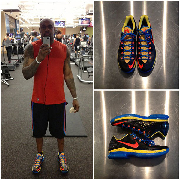 早在此前鞋报已经报道过这款曝光的 Nike KD 5 Elite 俄克拉荷马客场配色的新闻,此次我们将再次看到它出现在杜兰特的朋友兰迪 威廉姆斯身上,此图是他朋友在训练的时候自拍的,大家觉得如何呢?感兴趣的话就赶紧入手吧。