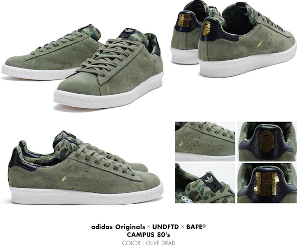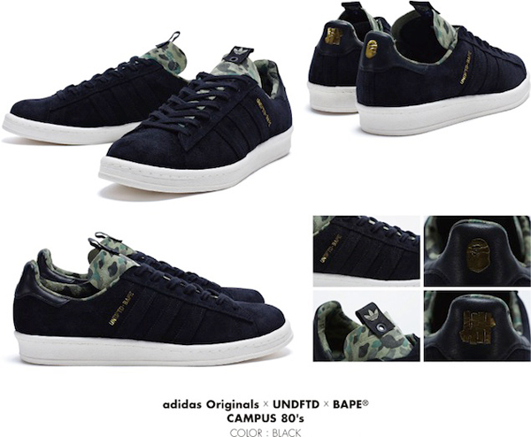 去年就曾吸引不少潮流人士关注的 Bape x Undefeated x adidas Originals 三方联名鞋履系列由于种种客观原因而迟迟没有发售,终于,在万众期待下,这一系列三双联名鞋款终于将在本月4月13日于日本发售了,有渠道的朋友千万不要错过了。