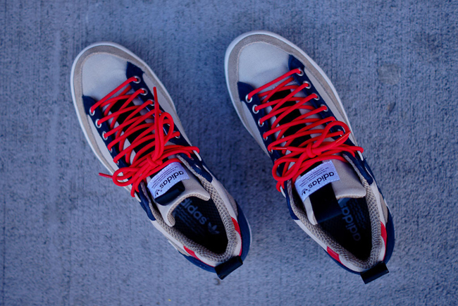 运动休闲品牌 adidas Originals 近日发表了一款休闲与户外相结合的 Trekdance 新鞋款,因此你可以在这款鞋上找到诸多不同面料的组合,例如帆布、麂皮以及皮革等等,米色的鞋身配以藏青色的细节以及大红色的绳形皮质鞋带点缀,机具都市休闲气息。目前这款鞋已在 KithNYC 上架,有兴趣的朋友可以查看具体购买详情。
