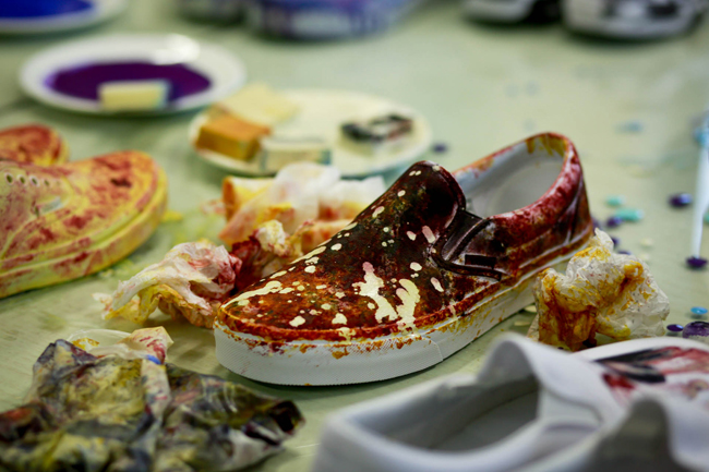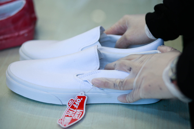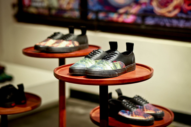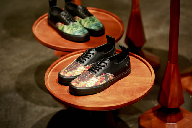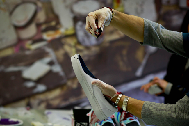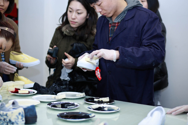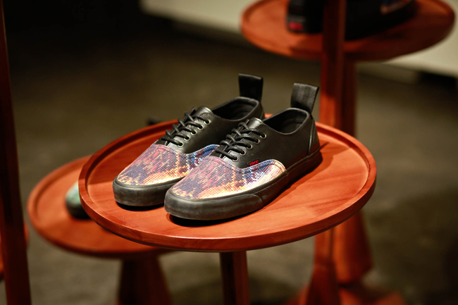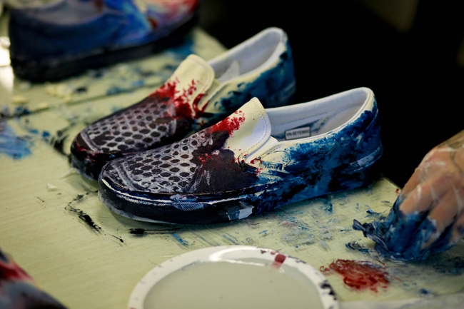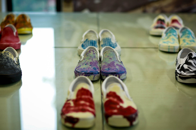 原创极限运动鞋类品牌 Vans 与前卫时装鞋履设计师品牌 KIROIC 即将于2013年3月底推出双方首次合作的特别限量鞋款系列。在正式发售之前,Vans 和 Kiroic 设计师 Kim 邀请了业内好友们共同前往了 Kiroic 上海工作室,一起感受本次合作款背后故事。在现场设计师 Kim 向来宾讲解介绍了本次合作的设计灵感和制作工艺,在之后的互动环节中,Kim 和他的助手为大家展示了染色技法,大家在他们的引导下在全白色的 Vans Slip-on 上即兴创作,体验了一次 Vans Custom Culture 定制文化的魅力。