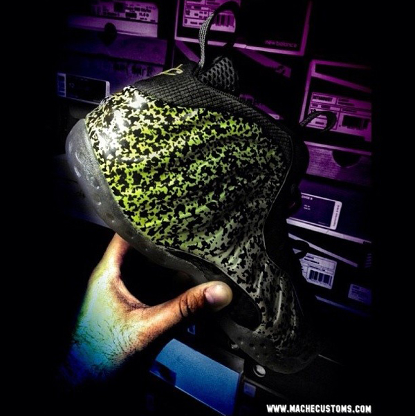 此次给大家带来这款作品依旧是定制大牌 Mache 给 Nike Air Foamposite One 定制的,从图中可以看出鞋面加入了渐变绿低色调以及黑色泼墨元素,Mache 称其名为 "Oregon Nites"。大家觉得这样一款喷如果市售,你们会去购买么?