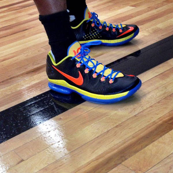 继昨天曝光了两款全新配色之后,这款备受瞩目的精英2.0系列鞋款 Nike KD 5 Elite 延续着推出新配色的脚步。此番,这款雷霆客场配色曝光于网络,鞋款采用了黑色的鞋面,鞋舌、中底以亮黄色打造,而大底以及携带则采用了蓝色制成,最后,鞋身上的 Swoosh 则以橙色勾勒,撞色效果极为显著。相信不久杜兰特就会穿上这款全新战靴征战赛场了吧。