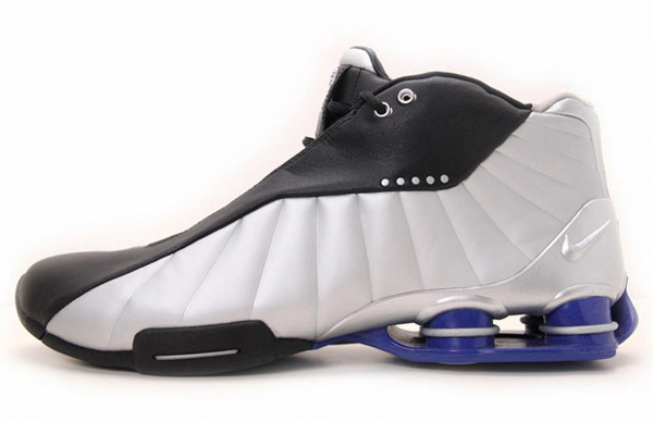 在 Nike Shox 设计之初它真的是有一个包含金属弹簧的设计原型,直到 2000 年正式推出包括跑步鞋、训练鞋和篮球鞋的系列产品,马上就引爆大家的想象力。当你看到 Vince Carter 2000 年在悉尼奥运上跨人扣篮之后,你会毫不犹豫地觉得 Nike Shox 能通过弹簧的原理产生反作用力而跑得更快跳得更高。事实这更多停留在概念上,产品外型设计上的突破大大超越了其缓震系统的实际效能。经过一段时间的发展和材料变化之后,Nike Shox 被新的科技所替代,但它的出现的确带给了我们短暂而强烈的震撼。