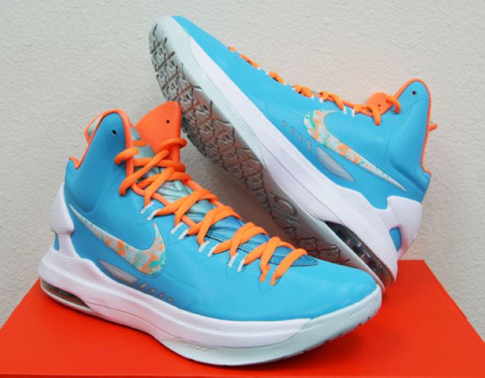 复活节版本的Nike KD 5近日在网络上曝光了一组全新图片和市售信息,靓丽的配色设计异常诱人,喜欢的朋友可以关注一下。