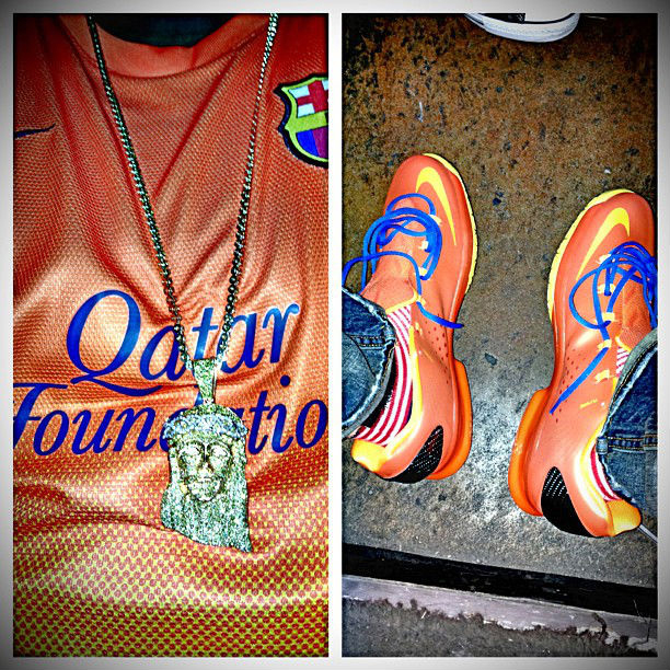 近日杜兰特的表弟 Tony 又曝光了一款 Nike KD 5 Elite 的全新配色。这款全新配色采用了橙色的鞋面为基础,外底、内衬以及 Swoosh 采用了亮黄色打造,而鞋带则使用了蓝色鞋带。目前还没有这款配色的确切发售信息,各位对 Nike KD 5 Elite 有兴趣的话可以持续关注我们的新闻报道。