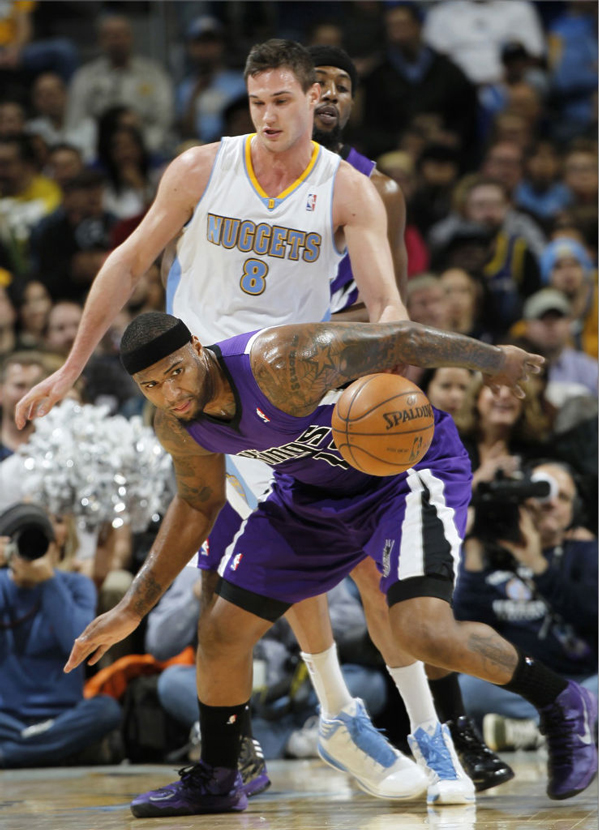 此次给大家带来一款 Nike Basketball 2013 年的实战球鞋新品 Nike Zoom Hyperdisruptor 最新配色,此鞋款上脚于国王队对阵掘金的时候,国王队 德马库斯 考辛斯在比赛中上脚了此鞋款,鞋身以紫色为主色调与国王队客场配色球衣相呼应,上脚后尤为骚气十足,也是一款实战的好鞋,喜欢的朋友不妨关注一下哦。