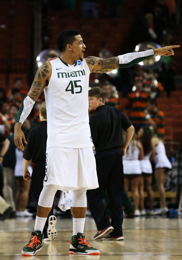 想必大家都知道迈阿密热火今天已经26连胜了,在NBA的另一端,NCAA的球场上,迈阿密大学也进入了十六强,此次我们发现一位迈阿密大学球员 Julian Gamble 上脚了 SoleFly x Jordan Spizike,让人眼前一亮,此鞋款是以迈阿密配色橙色与绿色元素打造,大家觉得如何呢?喜欢的话就赶紧来关注一下吧。
