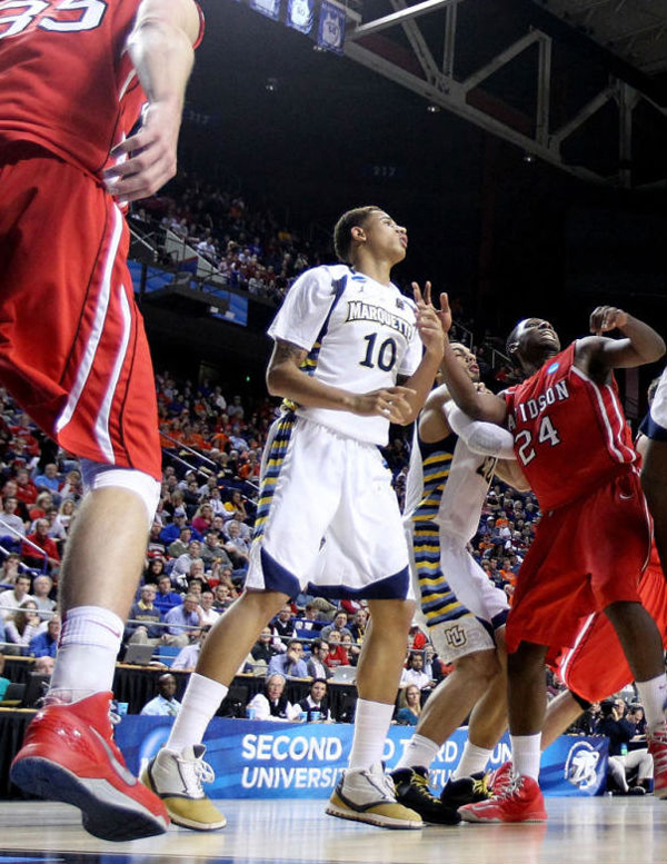 说到马奎特大学就会让我们想到它是韦德的母校,在进入16强的比赛中,马奎特大学前锋 Juan Anderson 上脚了一款 Air Jordan 16 “Ginger” ,让我们来跟着图片一起欣赏一下此鞋款的魅力吧。
