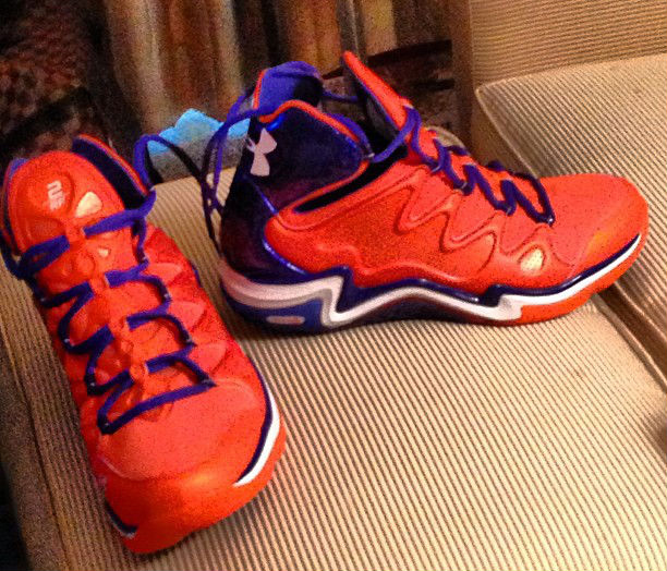 虽然从推出之后一直保持着相当高的关注度,但是至今没有一位球员将 Under Armour Charge BB 穿上 NBA 的赛场,但是 Under Armour 前不久推出的低帮版本 Charge BB 改变了这一尴尬的局面。肯巴 沃克也在全明星新秀赛上首次将这款 Under Armour Charge BB Low 穿上了赛场。此番网络上曝光了一款 Under Armour为旗下球员,纽约尼克斯的费尔顿推出的 Charge BB Low PE,鞋款采用了纽约标志性的蓝橙配色,鞋舌上也加载了 RF 2 的字样,以此表明其特殊性。