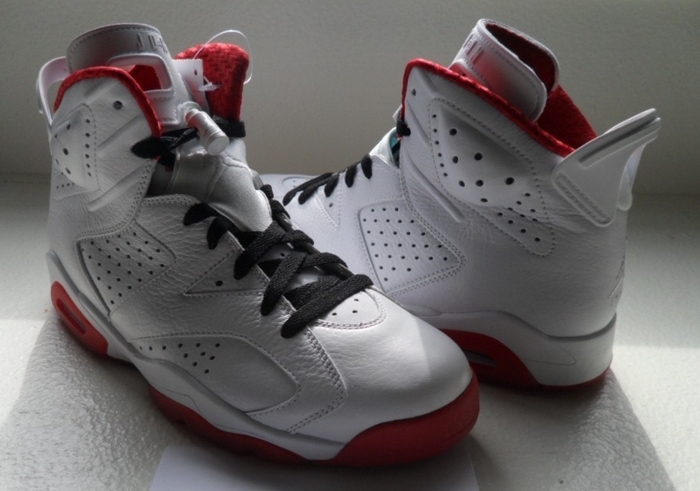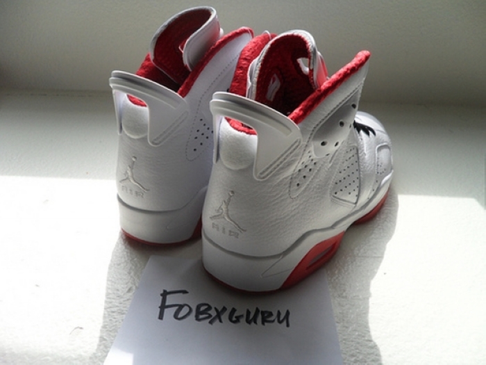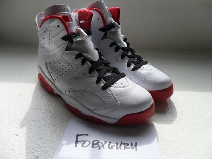 Jordan Brand “History of Flight”系列套装中的Air Jordan 6近日曝光于网络,实物图片中的Air Jordan 6运用纯白色的鞋面,红色内衬与外底,搭配黑色鞋带,目前这双Air Jordan 6“History of Flight”出现在eBay之上,喜欢的朋友可以前去了解。