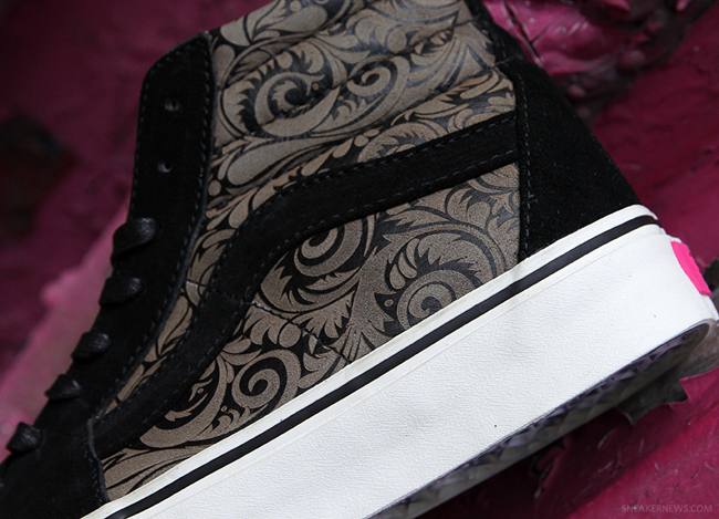 前两天我们为大家详细介绍了这款来自美国滑板品牌 Vans 联手时尚名所 Concepts 打造的 “Combat Zone” Sk8-Hi ,以英国作家 John Cole 笔下的著名红灯区 “Combat Zone” 为灵感打造的效果着实令人惊艳。今天我们则继续为大家带来这款鞋的最新细节实拍,如果各位喜欢的话不妨多加留意,这款鞋将在 3月30号发售。