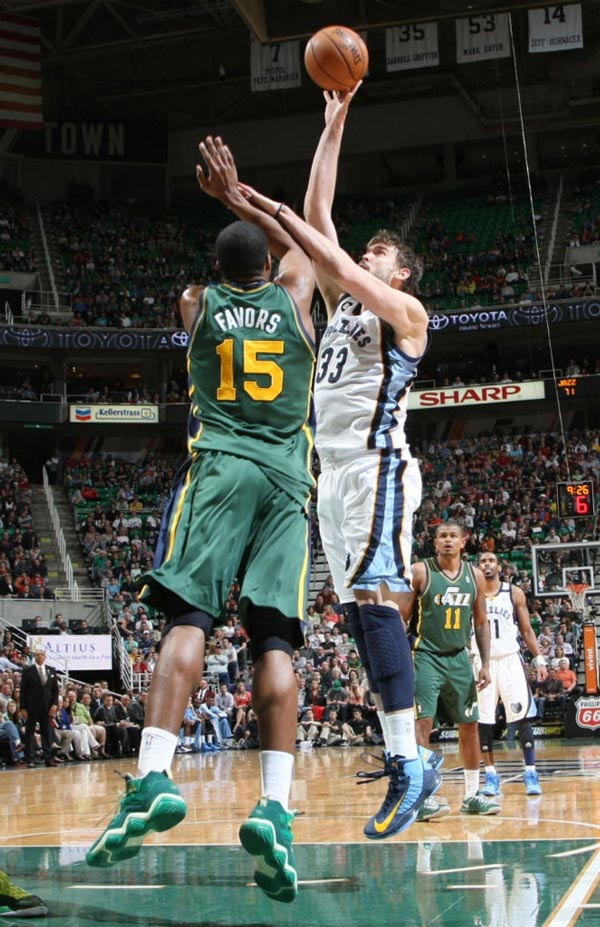 这个赛季灰熊战绩已经排在了西部第四,在灰熊对阵爵士的比赛上,我们发现了灰熊队当家内线马克加索尔上脚了一款 Nike Hyperdunk 个人 PE,从图中可以看出,鞋舌标有加索尔的名字 “MARC” 字样和 Nike 的标志性 LOGO,大家觉得此鞋款如何呢?