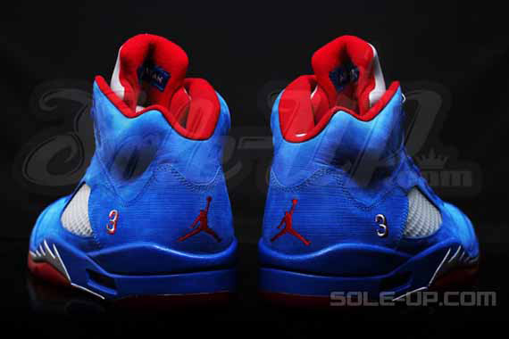 这款名为 Air Jordan 5 "CP3" 配色的鞋款顾名思义是以 Jordan Brand 旗下当家代言人克里斯 保罗为灵感,配色则采用了保罗如今快船队的标志配色。蓝色的翻毛皮鞋面配以红色的内衬以及大底,细节部分则以银色勾勒。而鞋身侧面的“23”字样此次则换做了保罗的背号 “3”,以此凸显这款鞋的特殊性。据悉这款 Air Jordan 5 "CP3" 配色将在 2013年年底发售,年底的球鞋市场,可以预见又将会有一场腥风血雨啊!